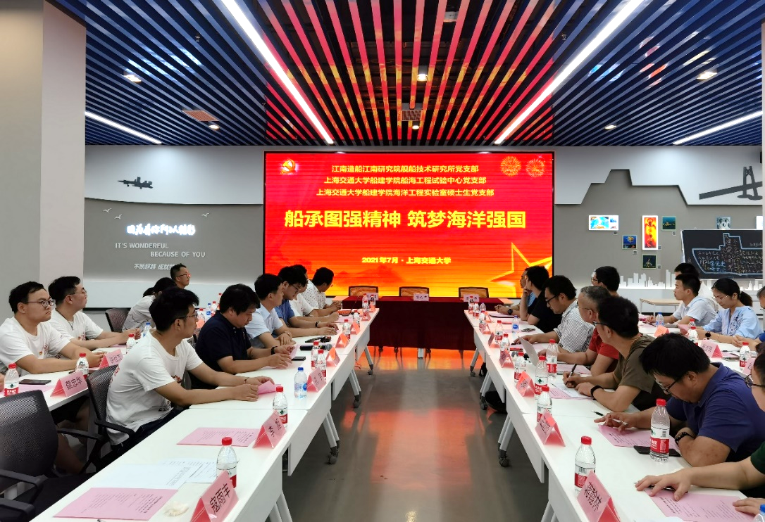 适逢中国共产党建党100周年之际,为贯彻落实党的十九大精神,加强基层组织建设力度,提升基层党建工作水平, 2021年7月17日,禁漫 船海工程试验中心党支部、海洋工程实验室硕士生党支部与江南造船(集团)有限责任公司江南研究院舰船技术党支部联合开展了“船承图强精神,筑梦海洋强国”主题党日活动,举行了共建签约仪式与交流座谈会。