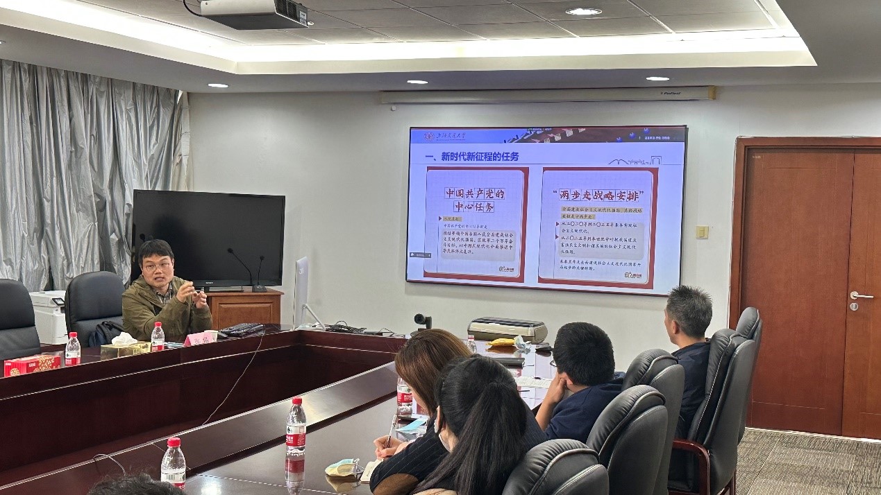 2022年11月18日,为深入学习、深刻领悟习近平总书记二十大报告精神,船海工程试验中心党支部、水下工程研究所党支部和海上装备与系统研究所党支部在海洋深水试验池五楼会议室开展了联合主题党日活动,邀请马克思主义学院助理教授张杨老师为支部党员讲授题为《从二十大报告看百年未有之变局下高质量发展的实现路径》的专题党课。学习活动由船海工程试验中心党支部书记李俊主持,共有30余名党员参加。