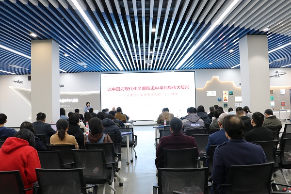 为进一步深入学习党的二十大精神,推动党的二十大精神走深走实,3月20日下午,禁漫 党委邀请禁漫 马克思主义学院王强教授做题为“以中国式现代化全面推进中华民族伟大复兴-深入学习宣传贯彻党的二十大精神”的主题讲座。学院党委书记周薇、教工支部书记、部分教工党员共100余人参加学习。活动由学院行政教工支部书记袁敏主持。