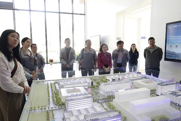 首先,支部党员参观了长兴实验室。在门厅展示区,谭华介绍了长兴海洋实验室的规划及进展。国家大科学设施“远海浮动岛”、海上大型绞吸疏浚装备“天鲸号”、全海深无人潜水器“思源号”、深海重载作业采矿车“开拓一号”和“开拓二号”、波浪运动补偿装置等一个个“重器”模型充分彰显着交大科研人员自主创新的奋斗故事,深深地吸引着大家驻足观看。在智能制造实验区,科研人员介绍展示了紧密服务工程一线的大型船舶分段高精度对接系统、船舶小组立无人化产线系统、复杂曲面智能焊接装备等一系列先进制造装备,让人大开眼界,对智能化造船的前景充满期待。