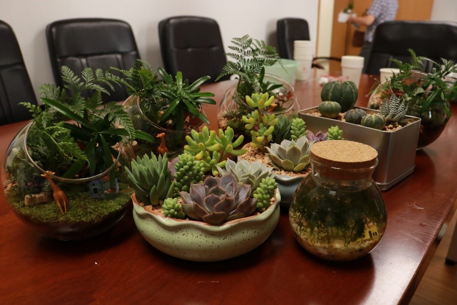 本次微景观桌面盆栽制作活动,不仅在炎炎夏日为大家带来盈盈绿意,也使单调的办工桌上焕发出勃勃生机。学院工会将继续关注学院教职员工的兴趣爱好和心理健康,举办更多活动丰富老师们的业余生活。