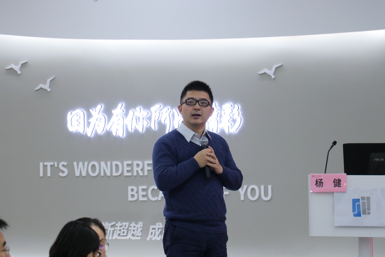 杨健就课程思政背景、课程思政教学体系以及课程思政的实施进行了讲解。他指出,课程思政建设要始终立足党的教育方针与新时代国家发展需求,围绕学校人才培养目标和专业培养目标展开,立足“价值引领、知识探究、能力建设、人格养成”四位一体育人理念,将思政育人元素有机融入教育教学全过程,实现教书与育人、传道与授业解惑、价值性与知识性、显性教育与隐性教育相统一。
