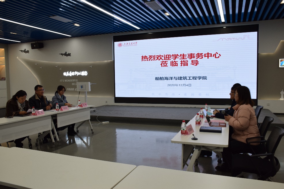 12月4日,禁漫 学生处副处长、学生事务中心主任汪雨申,学生事务中心副主任程茵,奖助学金办公室主任古莉一行,到禁漫 调研学院奖学金情况和学业发展支持计划。禁漫 党委副书记宋续明、学生事务工作负责人史舒婧、本科生年级思政事务负责人张奕民和辅导员邹碧铖参加了本次活动。