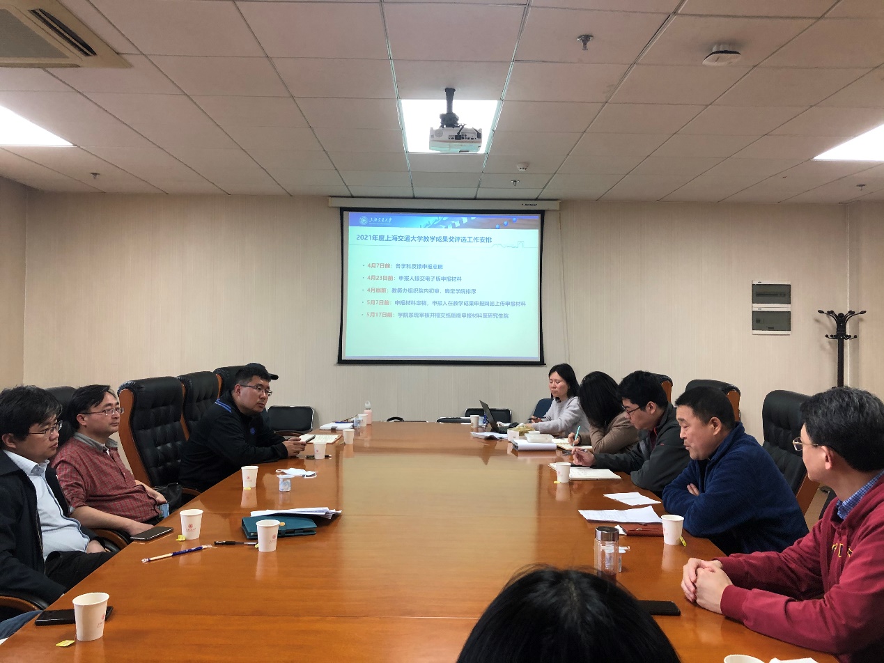 会议通报了2021年度校教学成果奖申报工作安排。会上,工程力学系教授、校级教学成果特等奖获得者蔡国平从素材收集、文本拟写、亮点特色、推广价值、申报策略、评审过程等多角度分享了教学成果奖申报经验,在场老师纷纷表示获益匪浅。