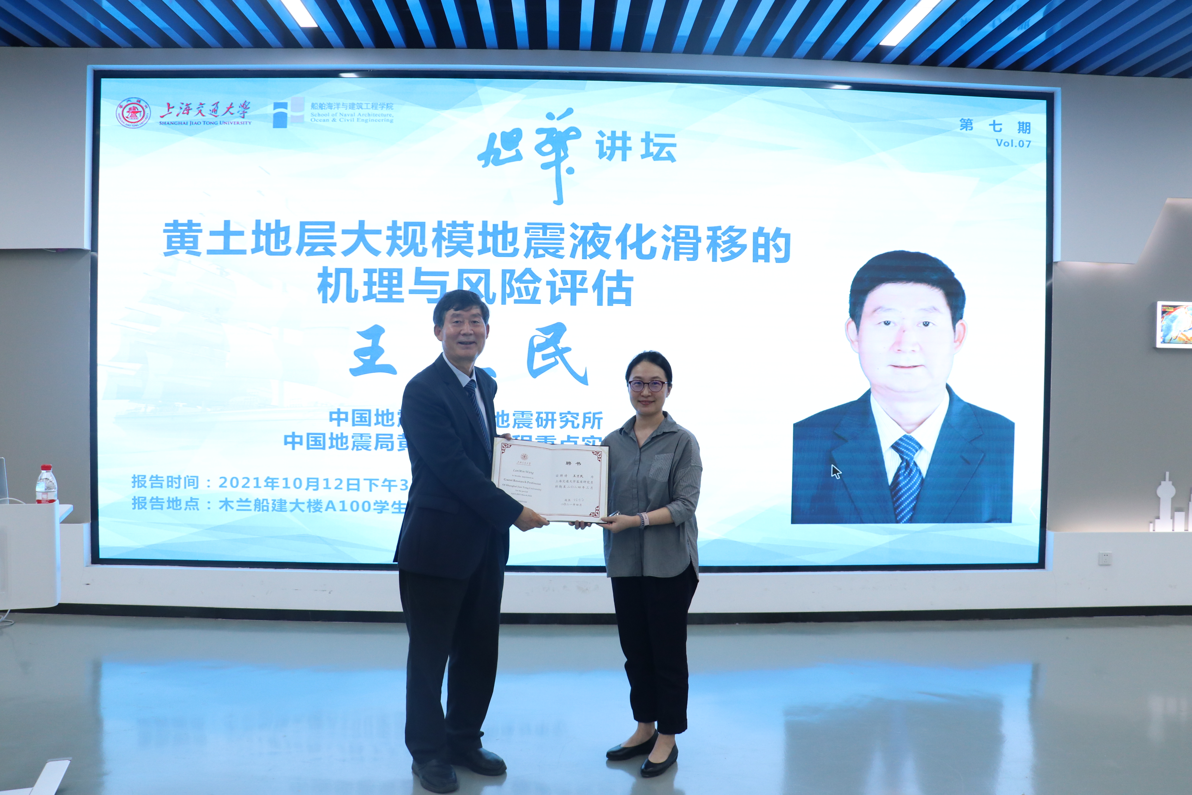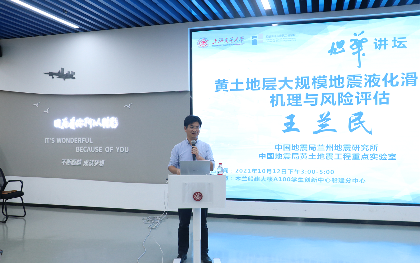 10月12日下午,禁漫 客座研究员受聘仪式在木兰船建大楼举行,原甘肃省地震局局长王兰民研究员受聘禁漫 客座研究员,并做客禁漫 第七期“旭华讲坛”,为船建师生带来题为“黄土地层大规模地震液化滑移的机理与风险评估”的精彩报告。会议由土木工程系主任陈锦剑主持。