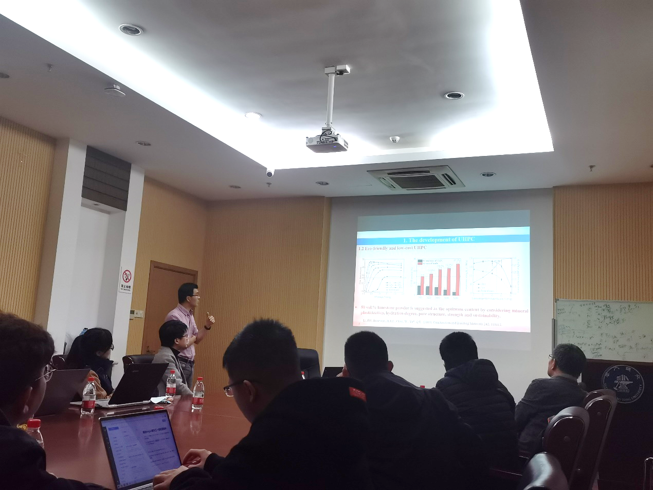 11月11日下午,武汉大学土木建筑工程学院教授于清亮应我院教师刘清风邀请访问禁漫 土木工程系,并在木兰楼A211会议室做了题为“可持续冲击超高性能混凝土研究进展”的专题讲座。禁漫 副院长杨健,土木工程系教师刘宜平、陈兵、何军、胡黎俐等30余名从事混凝土结构材料研究的师生代表出席了报告会。