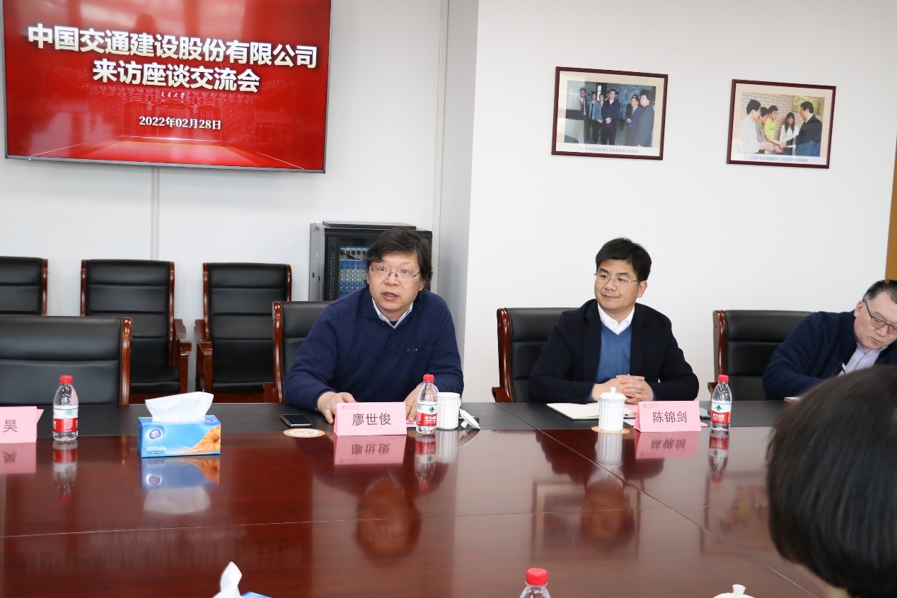 胡昊针对学校与中交建的合作模式进行了介绍:一是实体机构模式,二是平台型合作研究院,三是科研项目合作模式,四是顾问型合作模式等,并表示学校未来将与中交建共同探索新型研究院合作模式,培育创造新动力,引领行业新发展。