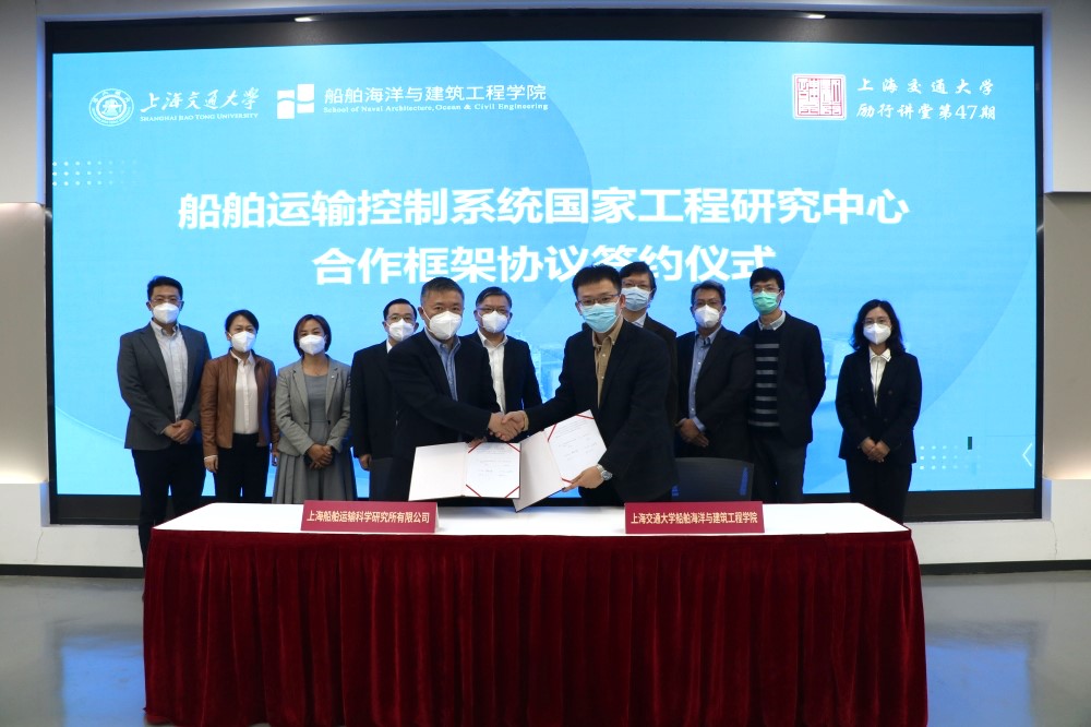 11月8日下午,上海船舶运输科学研究所有限公司-禁漫 共建国家工程研究中心合作框架协议签约仪式暨禁漫 励行讲堂第47期主题报告会在木兰楼A100成功举办。