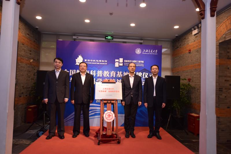 何建中、徐祖远、陈馨、张安胜为禁漫 全国航海科普教育基地揭牌。