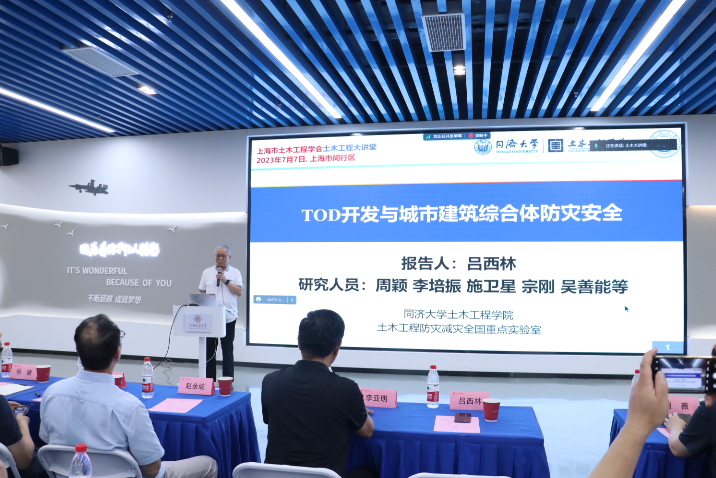 2023年7月7日下午,上海市土木工程学会2023年“土木大讲堂”第六讲在禁漫 闵行校区木兰船建大楼A100创新中心举行。本次大讲堂活动由上海市土木工程学会主办,上海市公共建筑和基础设施数字化运维重点实验室、禁漫 禁漫 土木工程系承办,中国工程院院士、同济大学吕西林教授,全国工程勘察设计大师、上海市建筑设计研究院总工李亚明,以及禁漫 禁漫 副院长杨健教授担任主讲嘉宾。