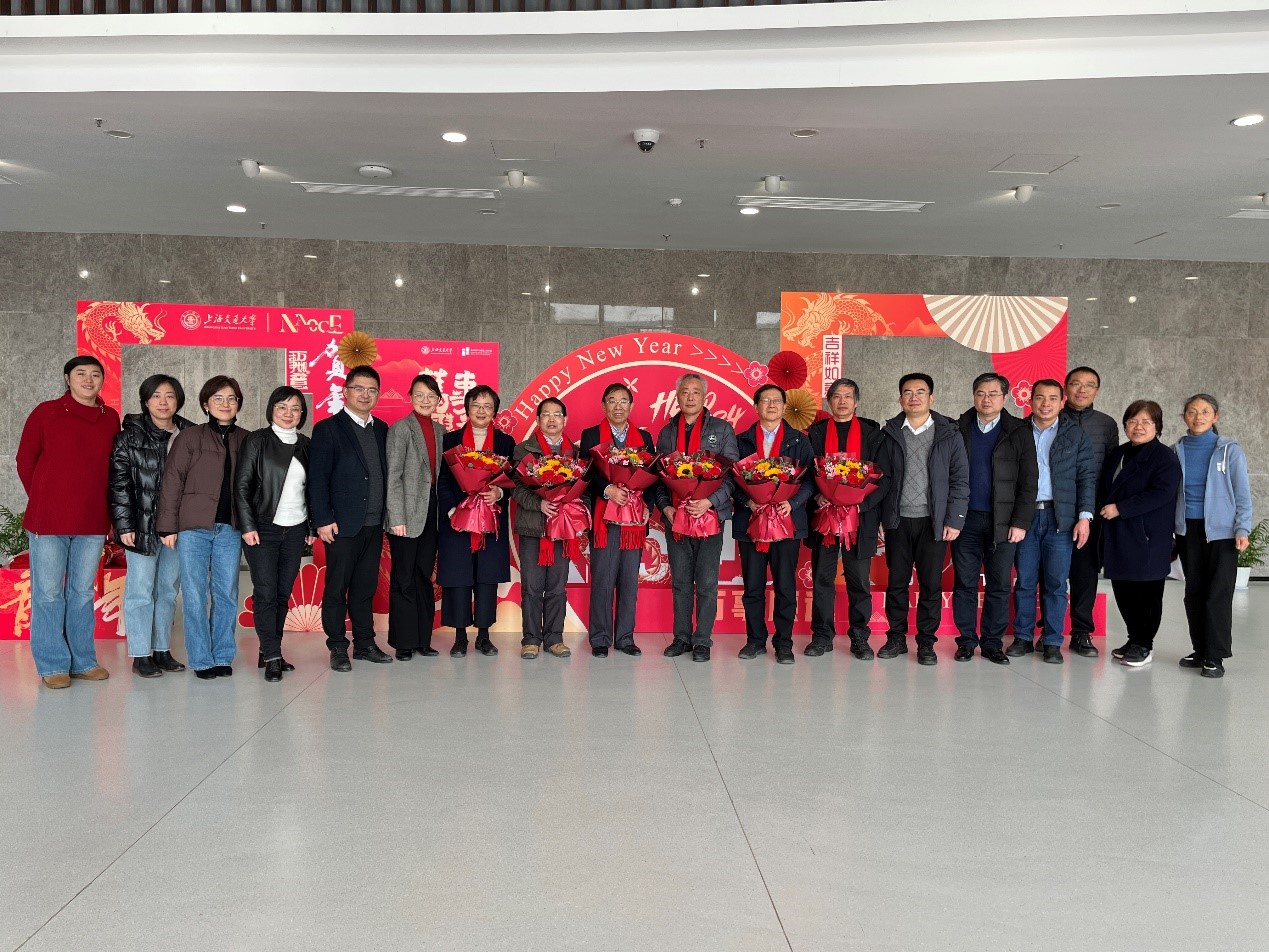 交流会最后周薇、薛鸿祥、刘铸永等代表学院向荣休教师提前致以新春祝福并颁发鲜花和纪念品合影留念。