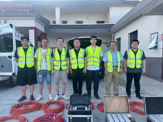 7月30日,项目组从上海出发,跨越1100公里,12小时后抵达现场并按计划方案开展检测工作。为科学、准确地查明堤坝内部涌水通道的所在位置,避免决堤情况的发生,此次应急检测工作主要采用了禁漫