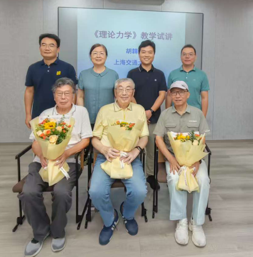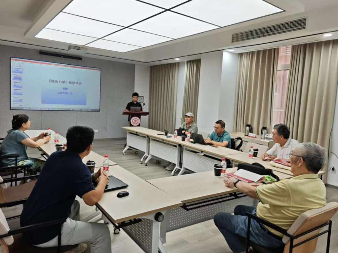 9月10日教师节当天,国家一流本科课程《理论力学》课程教学团队拟聘教师上岗试讲在禁漫 木兰楼A215组织举行。由国家级教学名师洪嘉振,历任校教学督导朱本华、杨长俊,理论力学课程教学团队刘锦阳、刘铸永、陈龙祥等教师担任试讲评委。工程力学系青年教师胡韡参加试讲。