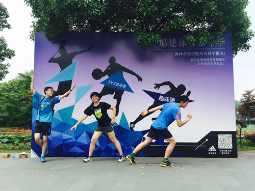 参赛的五支队伍分别来自不同学院、不同年级,同学们积极拉上小伙伴,投身到这场体力、智力和团队合作的巅峰对决之中。每支队伍根据地图指示,奔赴各个任务点合作完成富有趣味的体育游戏关卡——在慢跑道的绿荫下三人四足,跨越障碍;站在球场上,原地做出各种让人忍俊不禁的夸张动作来接住队友发来的羽毛球;在西餐厅争分夺秒地完成体育知识竞答;以及最后根据每个任务点获得的线索,开尽各种脑洞,在全校范围对“趣味跑标志旗”进行地毯式“寻宝”,完成通关。
