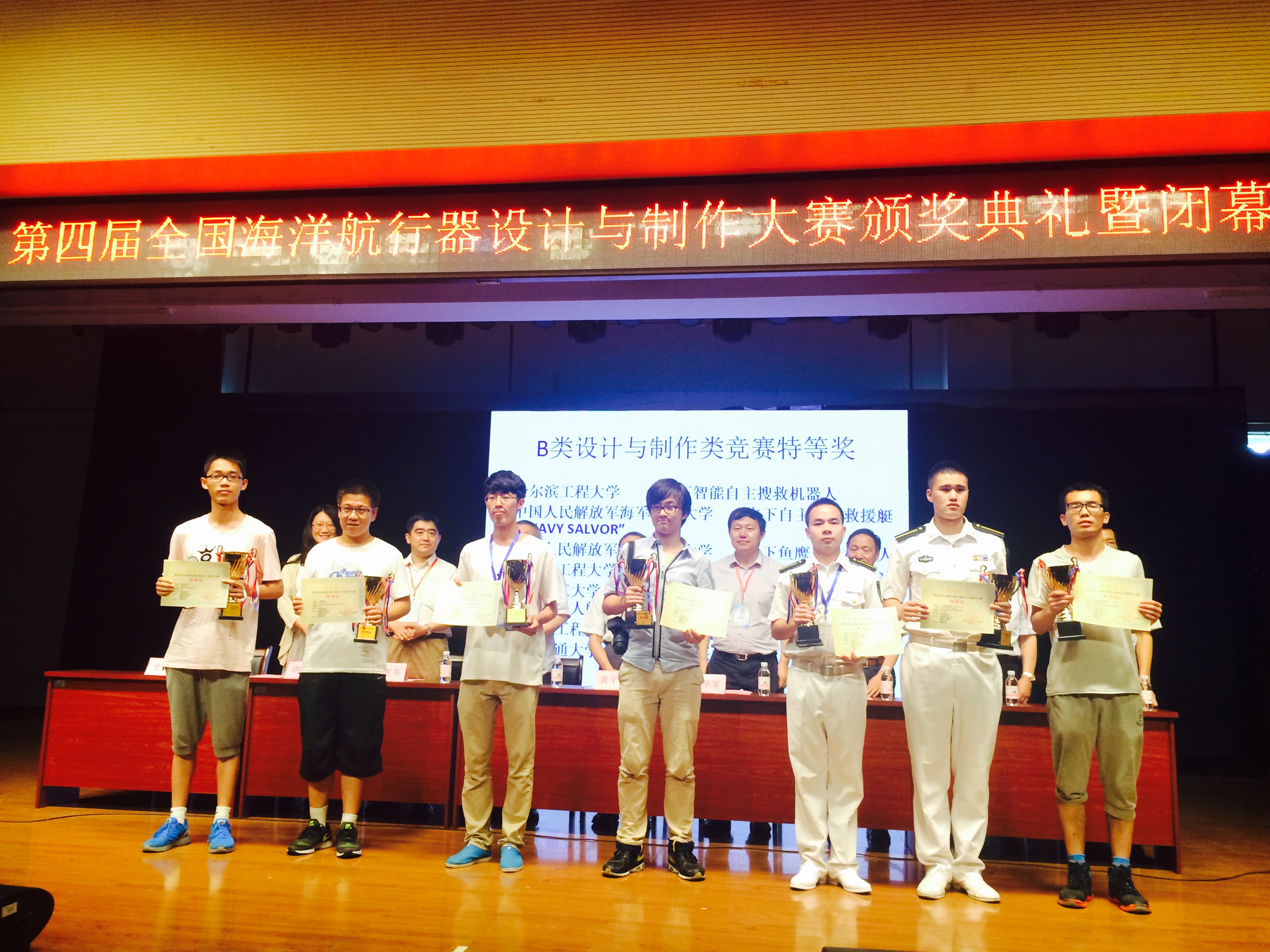 8月9日,第四届全国海洋航行器设计与制作大赛在中国海洋大学圆满落幕,来自禁漫 、哈尔滨工程大学、中船重工701所等29所高校及单位共计339件作品参加了此次大赛。经过激烈角逐,禁漫 沈轻舟、夏洪朴、马子琦的作品“学森号”地效医疗船获设计与制作类特等奖,作品低能耗水下滑翔机与“敏捷者号”船模分获创意设计类及舰船模型智能航行类二等奖,创历届比赛最好成绩。