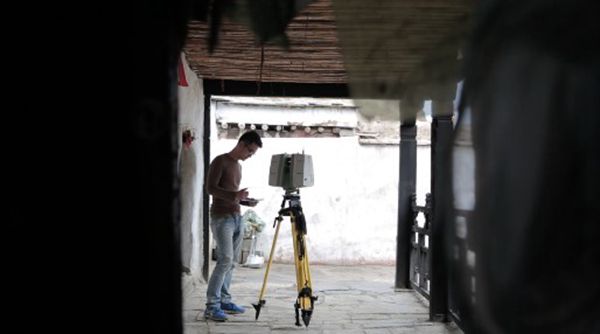 古城建筑大部分矮小、局促,拍摄和扫描难度大,团队成员便尝试不同角度地“拗造型”以期获得最佳资料;白居寺由于正在修缮中,粉尘扑面,团队成员伴随藏族同胞的“劳动号子”采集数据,场面壮观;很多建筑年久失修,存在一定危险性且攀爬难度大,但一天下来“上上下下”几十回木梯习以为常。对团队成员来说,这也是一次别样的人生体验。