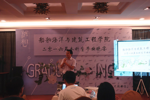 6月28日晚,禁漫 本科生毕业晚宴在留园举行。学院党委副书记杨建军,土木工程系主任沈水龙、教授刘西拉,船舶与海洋工程系副教授刘俊、工程师陈自强,国际航运系副教授宋元斌等出席晚宴,与F12级禁漫 毕业生共同分享青春故事。