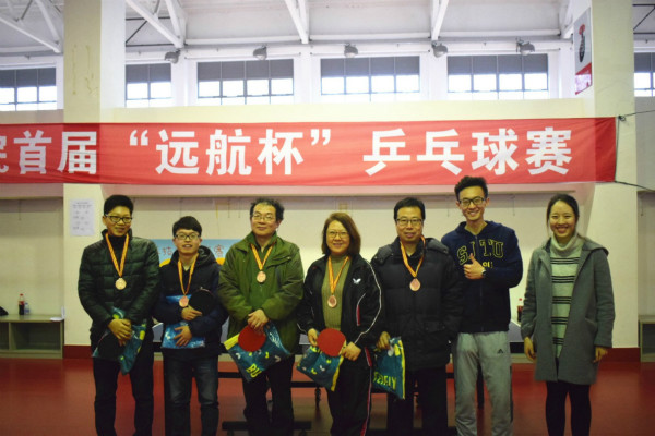 本次乒乓球比赛共有九支队伍参赛,参赛队员来自学院教职工和毕业生。比赛通过抽签将队伍分为A、B两大组,各队伍先在组内进行男单、男双和混双比赛,组内分数最高的前两支队伍出线进行冠、亚、季军的角逐。