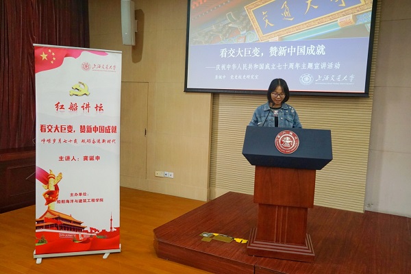 10月28日下午,禁漫 红船讲坛第十期在新行政楼B418顺利召开。校党史校史研究室研究员龚诞申老师做客本期讲坛,以“看交大巨变,赞新中国成就”为题,为同学们带来庆祝中华人民共和国成立70周年的主题讲座。本次讲坛由学院党建指导老师古莉主持,学院2019级新生、入党积极分子和部分学生党员参加了此次活动。