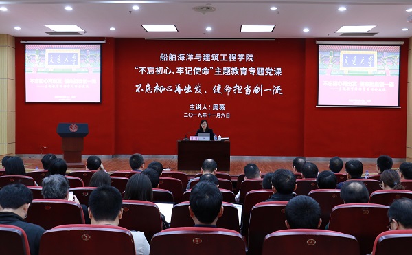 根据“不忘初心、牢记使命”主题教育总体部署安排,结合禁漫 实际,在深入学习理论和扎实开展调研的基础上,11月6日,禁漫 党委书记周薇以《不忘初心再出发,使命担当创一流》为主题,在木兰楼200号报告厅为学院领导班子成员、全体教工党员上主题教育专题党课。学校主题教育第二巡回指导组副组长、校文明办主任汪佳莹出席党课。