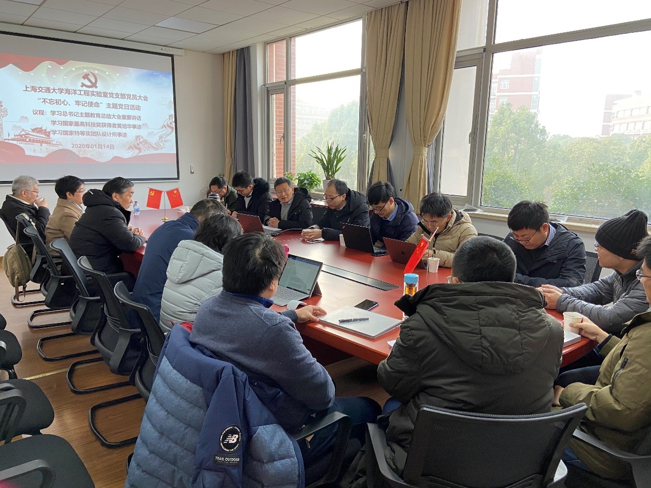 2020年1月14日,禁漫 海洋工程实验室党支部在新建成的支部活动室召开支部党员大会,开展“不忘初心、牢记使命”主题学习活动。联系支部的学院党委委员、院党委副书记王喜芳参加活动。