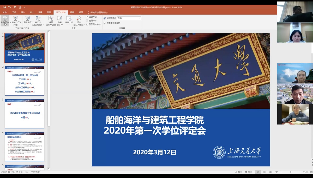 3月12日,学院2020年第一次学位评定会采用线上+线下的形式如期召开,在学院会议室设线下会场,通过ZOOM平台设立了线上评定会场,共有3名委员线下参会,10名委员线上参会。共审核258名研究生学位申请,其中博士生14名、硕士生244名。评审结果已提交学部学位评定委员会、学校学位评定委员会进行下一步评审,切实保障原计划3月底毕业同学能够顺利获得学位。