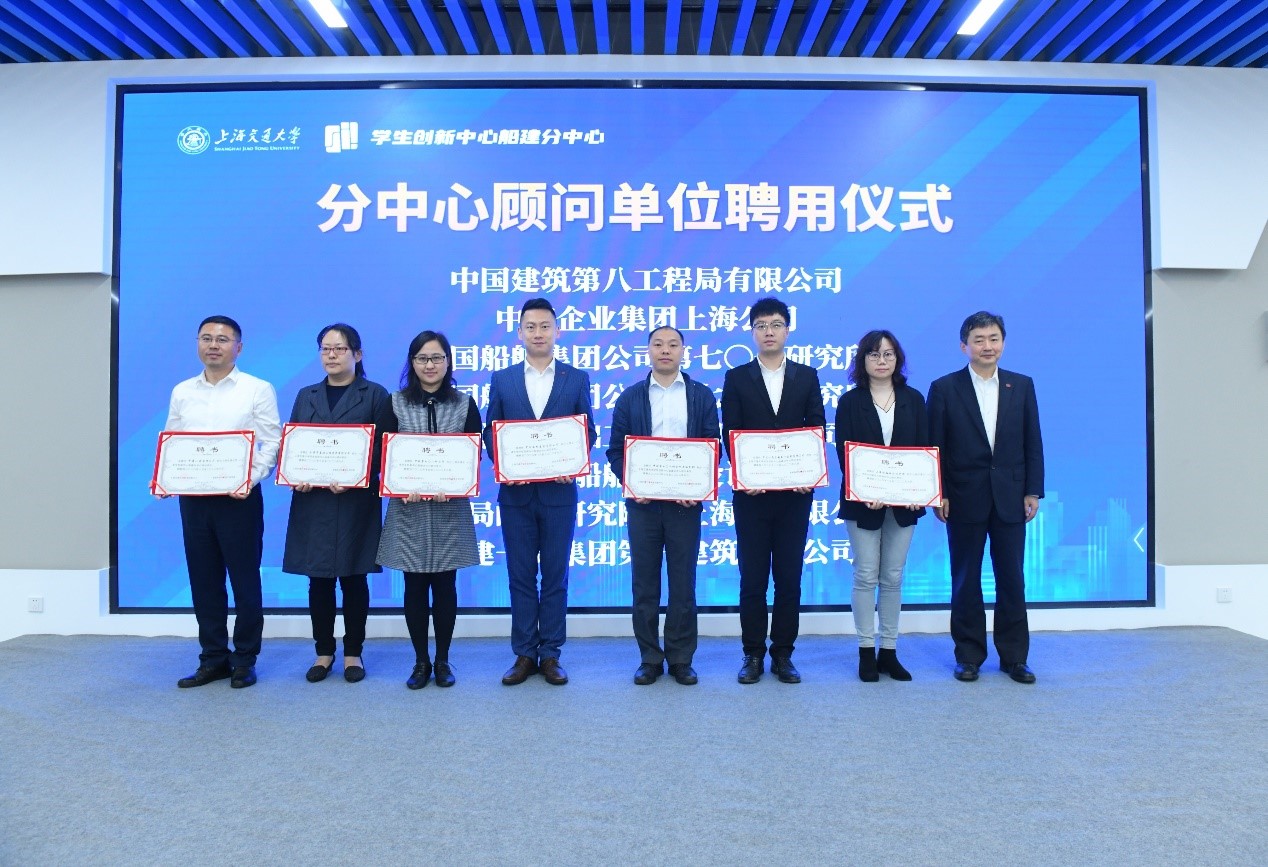 行业企业是分中心建设的重要支撑力量。中远海运重工有限公司、中国二十冶工程设计研究院、中国建筑西南勘察设计研究院有限公司、湖南中昱智云物联科技有限公司、普冷国际物流(上海)有限公司、江南造船(集团)有限责任公司、中国建筑第八工程局有限公司、中海企业集团上海公司、中国船舶集团公司第七〇一研究所、中国船舶集团公司第七〇八研究所、上海市基础工程集团有限公司、上海船舶研究设计院、招商局邮轮研究院(上海)有限公司、中建一局集团第一建筑有限公司获得了分中心顾问单位聘任。丁奎岭副校长为顾问单位颁发聘书。