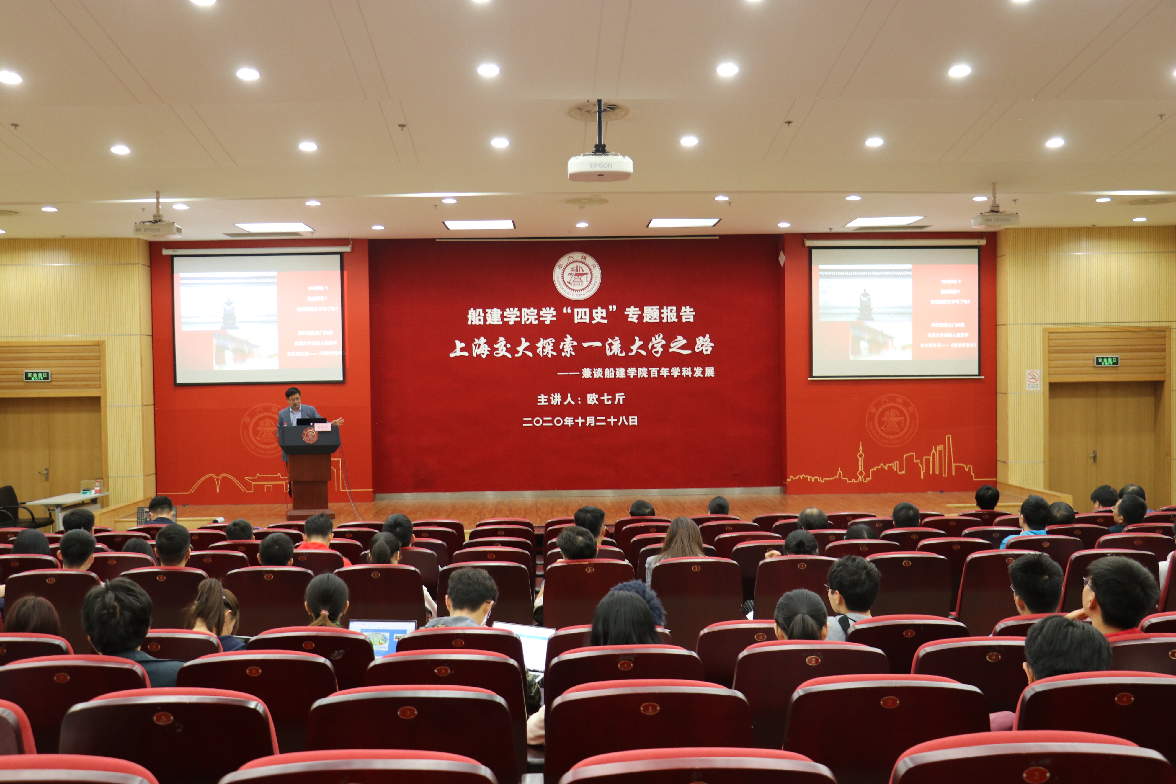 欧七斤为大家讲解了“禁漫 探索一流大学之路——兼谈禁漫 百年学科发展”,围绕交大校史回顾禁漫 百年学科发展脉络,深入挖掘“四史”内涵,讲述老一辈船建人的初心与理想,激励新一代船建人为贯彻党的教育方针和办好中国特色世界一流大学贡献智慧和力量。