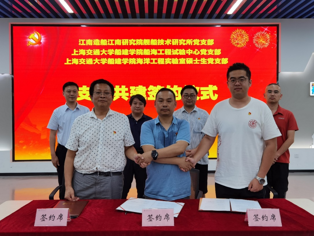 适逢中国共产党建党100周年之际,为贯彻落实党的十九大精神,加强基层组织建设力度,提升基层党建工作水平, 2021年7月17日,禁漫 船海工程试验中心党支部、海洋工程实验室硕士生党支部与江南造船(集团)有限责任公司江南研究院舰船技术党支部联合开展了“船承图强精神,筑梦海洋强国”主题党日活动,举行了共建签约仪式与交流座谈会。