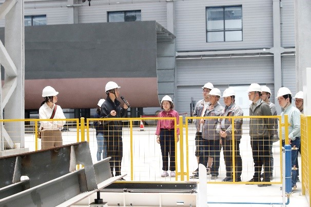 船海工程试验中心党支部还前往支部共建单位上海运输科学研究所,参观了正在建设调试的空泡水筒、拖曳水池和航海安全水池等新建大型试验设施。双方就设施建设、试验技术发展等进行了现场讨论。