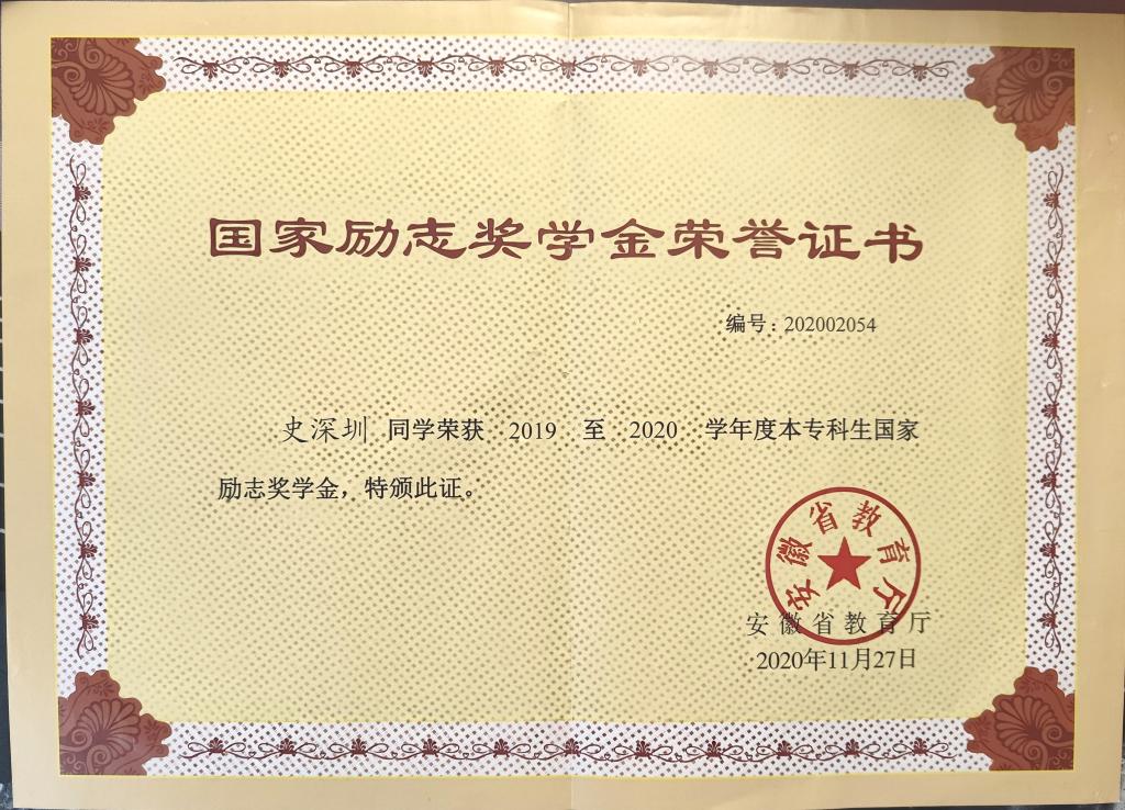 史深圳,光电信息19-1班长,中共党员,励志奖学金获得者,三好学生,优秀学生干部,考研录取深圳大学光学工程专业。