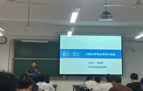 校级重点学科。在会议结束后,学生们主动向罗吉安及何泽全询问考研中遇到的一些疑惑,得到的两位老师的悉心解答。通过本次会议,同学们增进了对考研相关信息的了解,能够帮助自己合理进行选择与规划,收获颇丰。