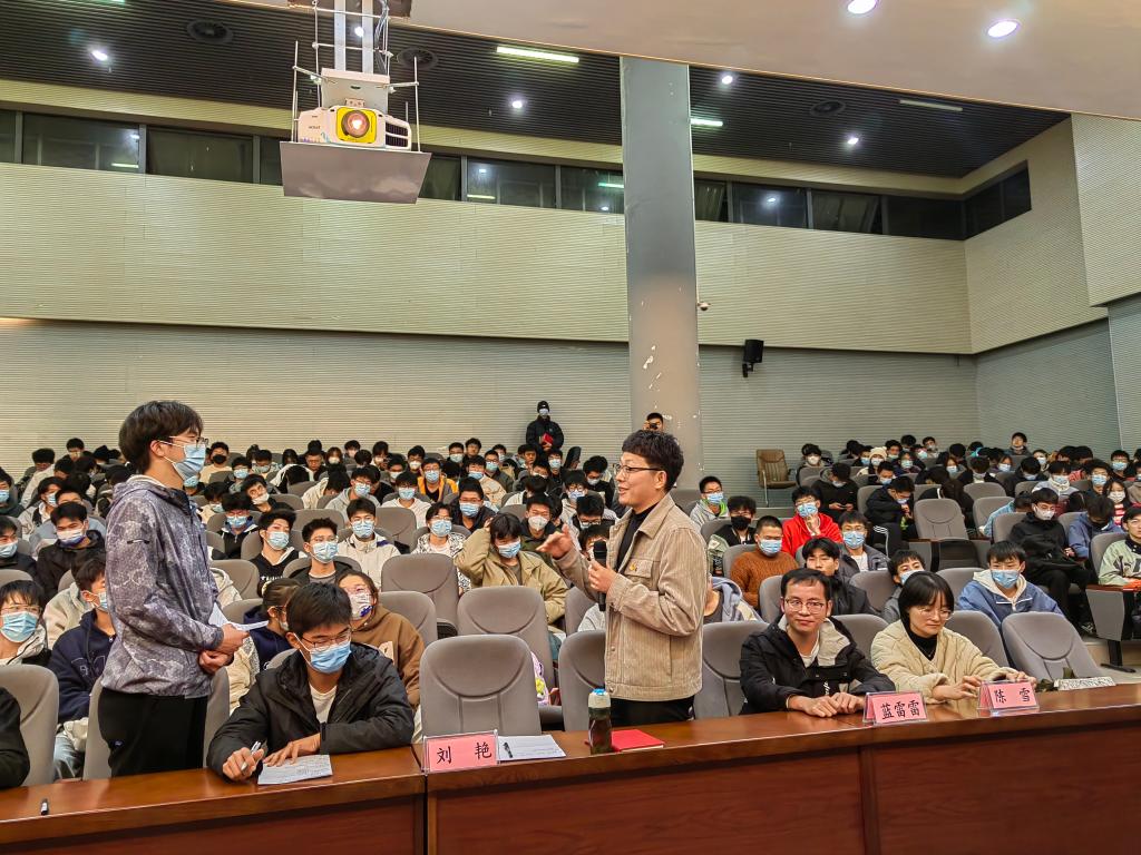 在互动交流环节,刘艳带领青年教师与大学生面对面地交流、心贴心地沟通,真诚耐心地回答学生的问题。