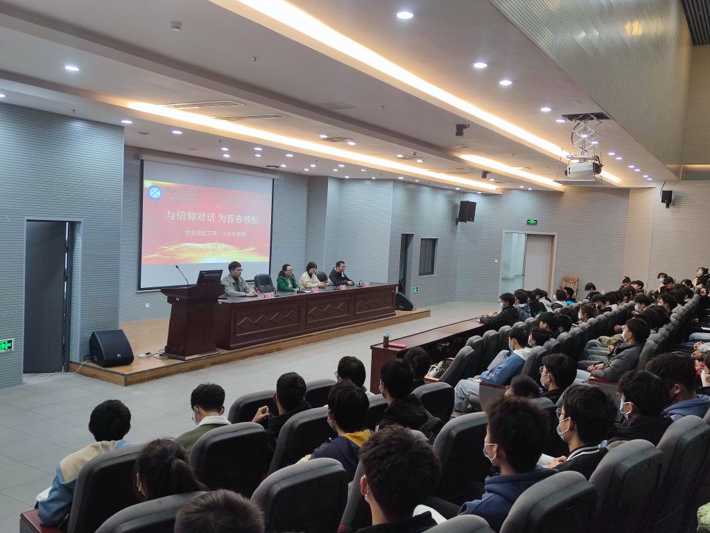 党委书记刘艳和陈雪、李彬、蓝雷雷三位青年博士党员教师,共同为2022级大学生讲授党课《与信仰对话,为青春领航》。