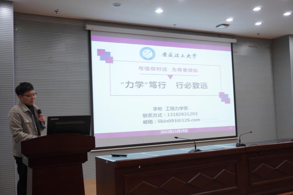 李彬、蓝雷雷、陈雪三位青年博士党员教师分别以《“力学”笃行,行必致远》、《格“物”穷“理”,不负韶华》和《坚定信念,超越自我》为题,结合自己本硕博十多年的学习经历、入党的故事以及入职之后的工作感悟等,与大学生共情、共享,细细诉说、娓娓道来。
