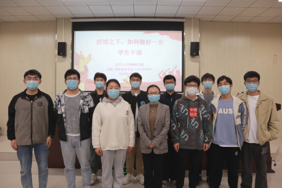 党委书记刘艳以《疫情之下,如何做一名学生干部》为题做线上线下相结合的专题报告。