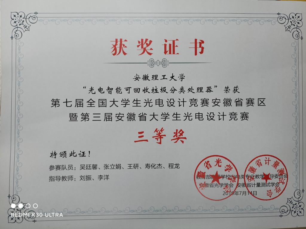 寿化杰同学担任班级生活委员一职,已顺利录取中国矿业大学信息与通信工程专业。大学期间荣获国家励志奖学金、校奖学金、校“三好学生“、“优秀共青团员”等称号。该生申请实用新型专利1项,曾获安徽省“精科杯”物理实验创新竞赛团体一等奖、全国大学生数学建模竞赛(安徽赛区)二等奖。该生十分注重综合能力的提升,大一期间进入校学生会学习部锻炼一年。在校期间积极参加各类创新创业活动,曾主持过大学生创新训练计划省级项目,已顺利结题。