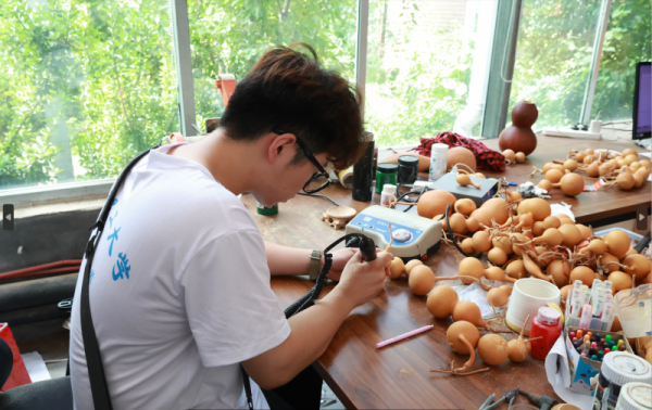 团队成员来到山东省聊城市定远寨镇民俗文化电商基地,在这里国家级非物质文化遗产“东昌葫芦雕刻”以电子商务的形式活跃于数字化互联网当中。团队成员了解到传统的东昌葫芦雕刻手工艺包括砑花工艺、微雕工艺、烙画工艺等,后来为了顺应时代的发展,手工艺人又发展出了新型的葫芦雕刻工艺——针画工艺。