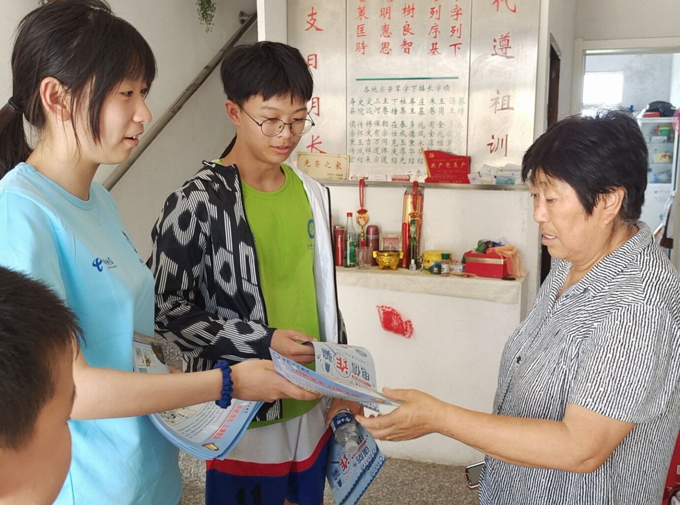 志愿者进村入户宣传禁毒与反电诈