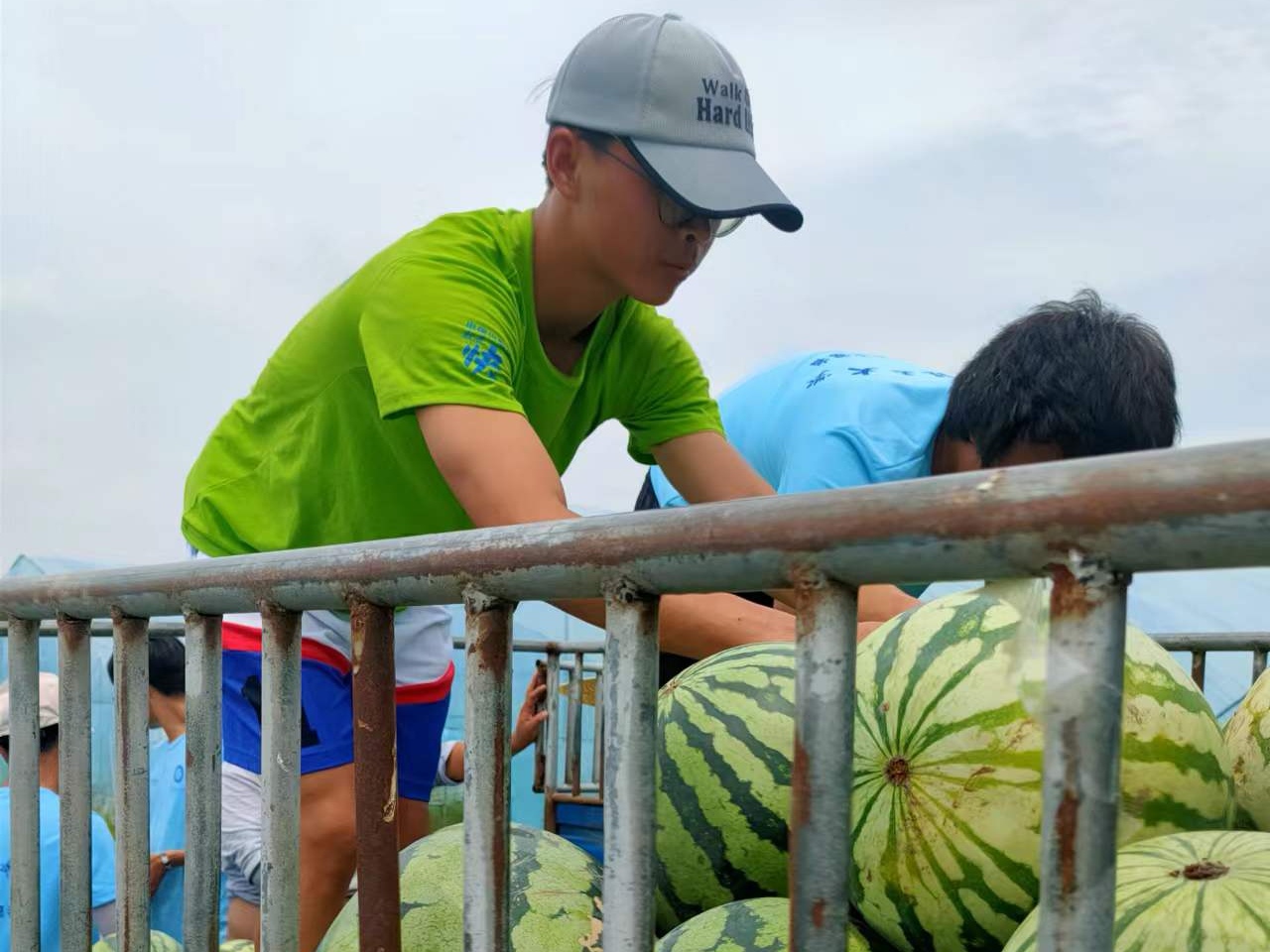 志愿者搬运西瓜(摄影:团队成员)