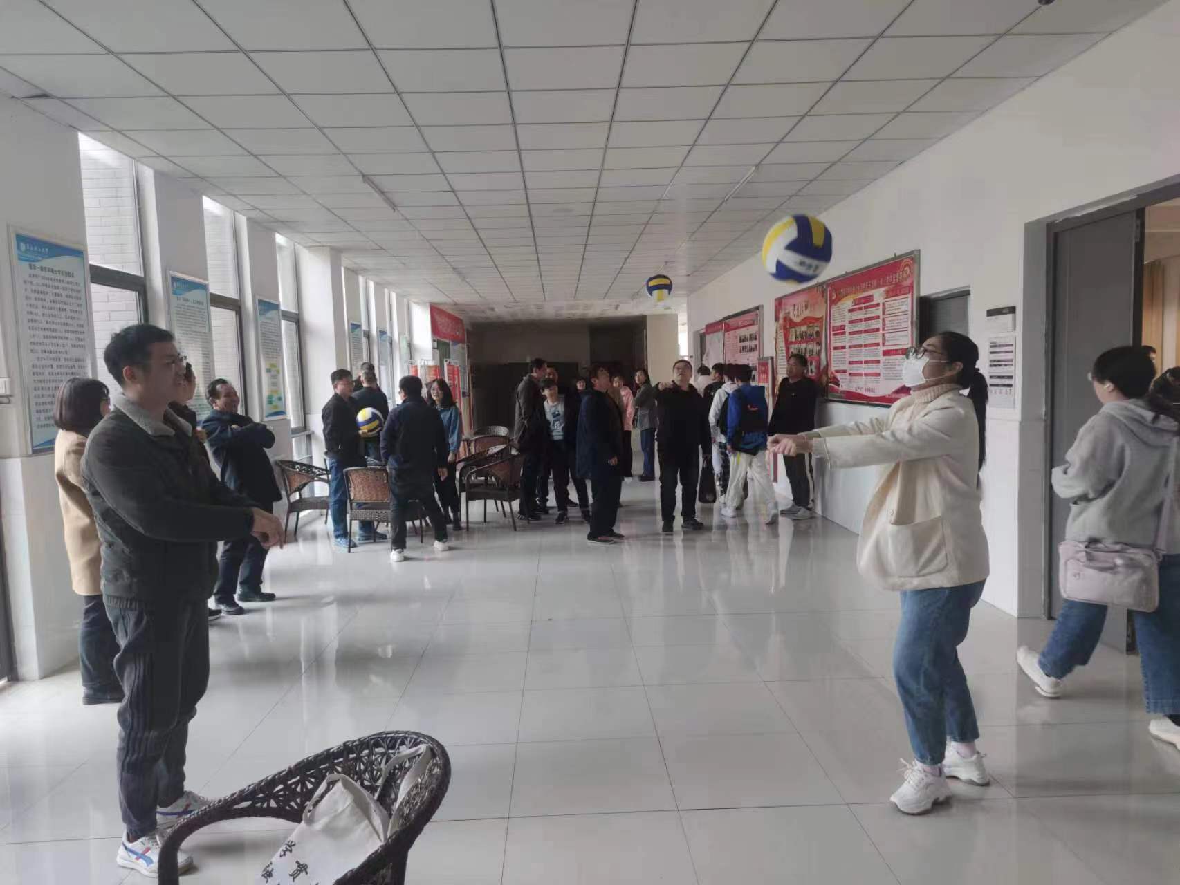 分工会在户外开展了“垫气排球”比赛。
