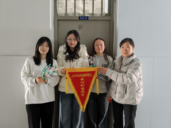 党委副书记郑孝莲为获奖者颁发锦旗。在此次宿舍美化大赛中,各参赛宿舍风格不一。有的倾心打造“动漫乐园”,将热门动漫角色的玩偶、手办错落有致地摆放,张贴动漫场景海报,浓郁的二次元氛围扑面而来;有的宿舍秉持“简约学术” 风格,整齐排列的书架上摆满了各类专业书籍与学术期刊,书桌干净整洁,仅点缀着几盆清新绿植,素雅的色调与简洁的布局营造出宁静而专注的学习环境。学生们纷纷表示在此次宿舍美化大赛中,通过共同探讨设计方案、一起动手布置,大家更加懂得了相互包容与协作的重要性,也收获了满满的成就感。
