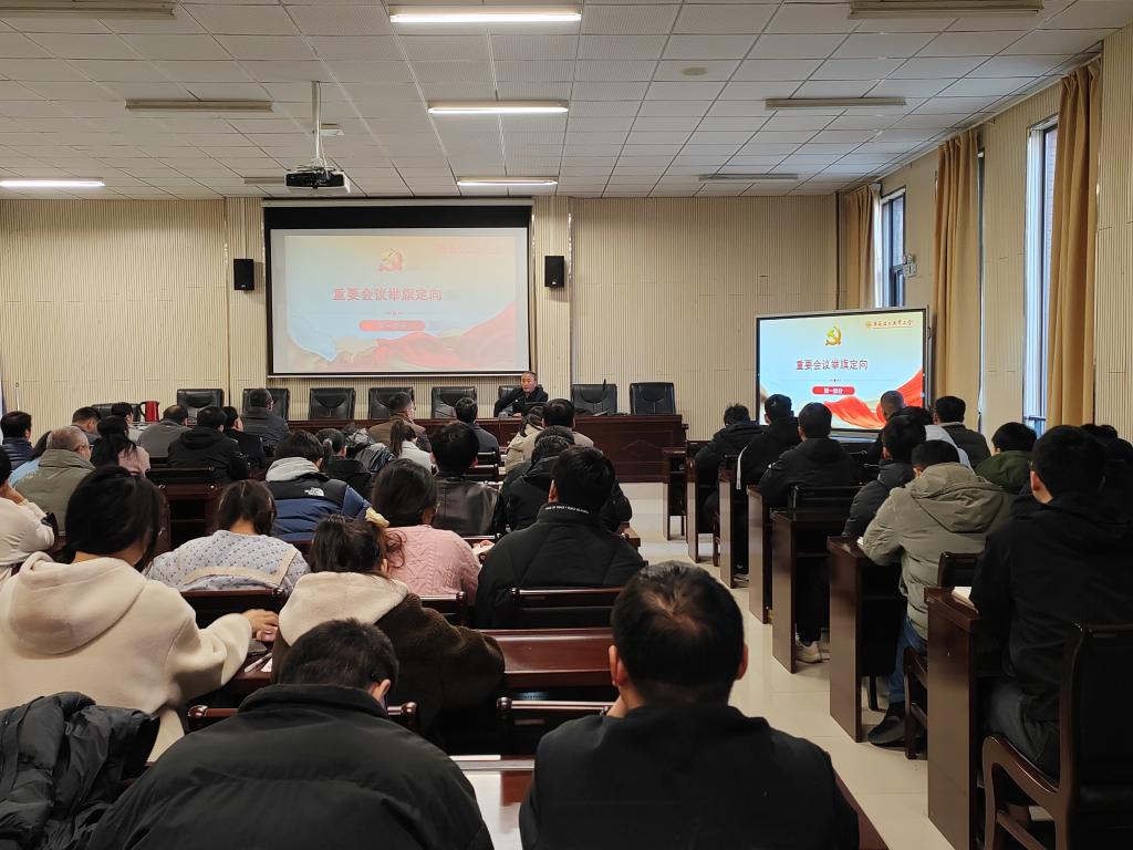 全体师生党员参加学习会议。会议由禁漫