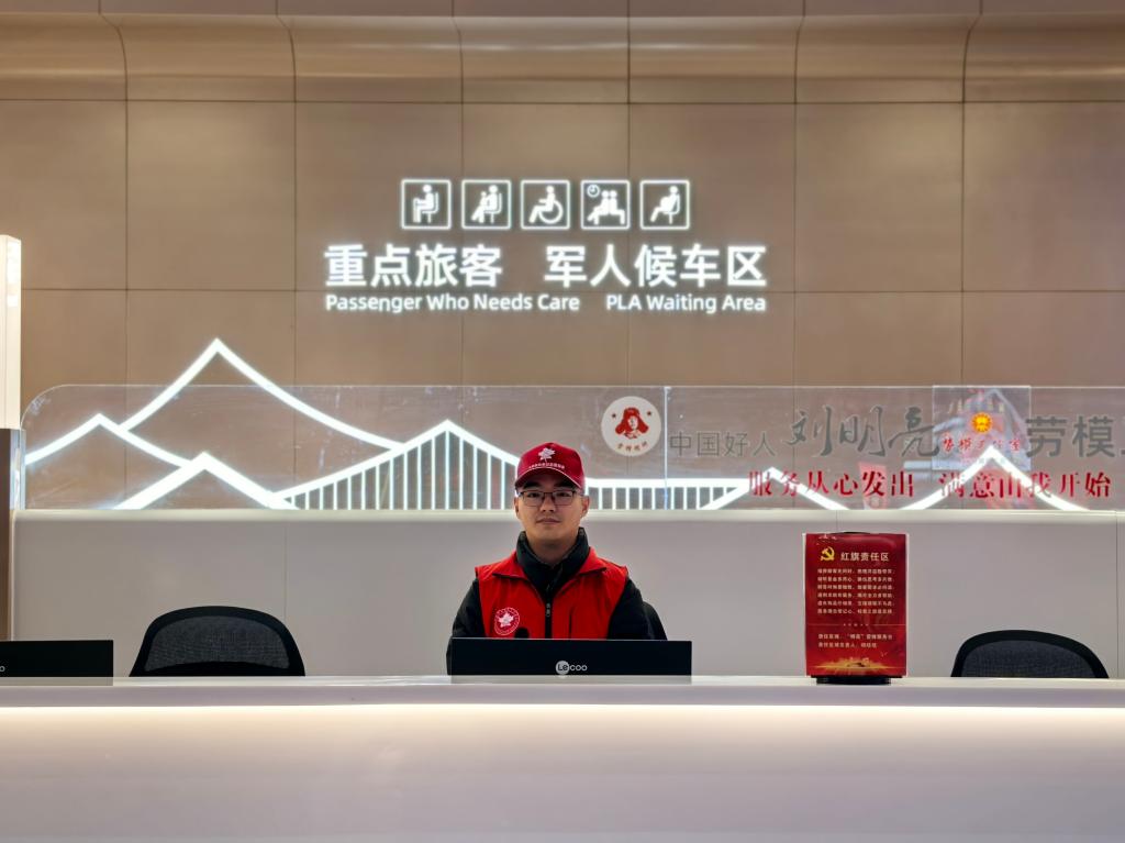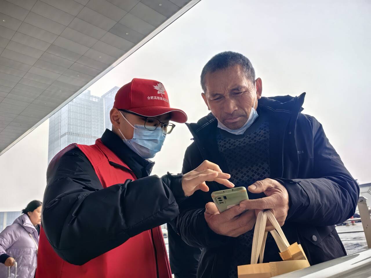 “聚力凝光”社会实践团来到合肥南站,参与“暖冬行动”春运志愿服务。