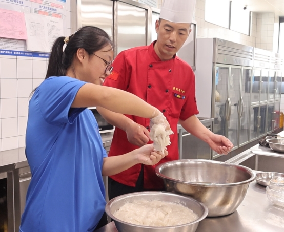 调研团成员参与鱼圆制作
