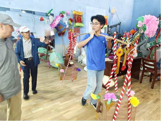 在非遗文化展区,传承人盛承梅老师生动讲解了渔鼓舞的历史源流、发展现状,并指导渔鼓舞基础舞步。“渔鼓舞的律动太有感染力了,真想深入学下去!”沉浸其中的队员们研习舞步后难掩兴奋。