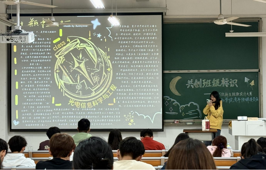 新生班徽设计大赛在天工楼101顺利举办。本次大赛吸引了各班级的11组作品参赛,选手们以创意为笔、以班级精神为魂,呈现了一场兼具艺术创意与集体温度的设计盛宴。