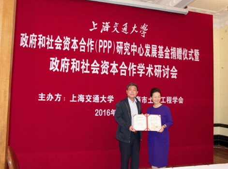 5月21日,禁漫 政府和社会资本合作(PPP)研究中心发展基金捐赠仪式暨政府和社会资本合作学术研讨会在徐汇校区举行。副校长张安胜出席,并为禁漫 土木与建筑工程系1996届硕士研究生、广州市穗芳建设咨询监理有限公司董事长、广州市穗沪投资管理有限公司董事长、广州市羚羊投资咨询有限公司董事长韩红英女士颁发捐赠证书。校党委宣传部部长胡昊、禁漫 党委书记张卫刚、中国农业银行上海分行副行长王世雄,中国(上海)自由贸易区政策研究局局长张湧等出席仪式。