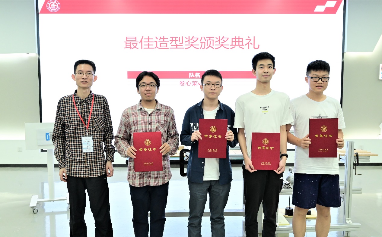 经过两个小时的加载过程,由庄严、刘扬明、张凯淇组成的“三人成行”队获得了本次比赛的一等奖;“飞虎队”、“哎!就是玩儿!”以及“凌晨两点模型队”三只队伍获得二等奖;还有七只队伍获得了三等奖。此外,“你说的都队”与“一点点”两只队伍获得最佳设计奖,“卡拉瓦桥”与“提桶跑路队”,两只队伍获得最佳制作奖,“卷心菜v2.0”获得最佳造型奖,“煎熬与偏慢模型小队”获得成功爬坡奖。