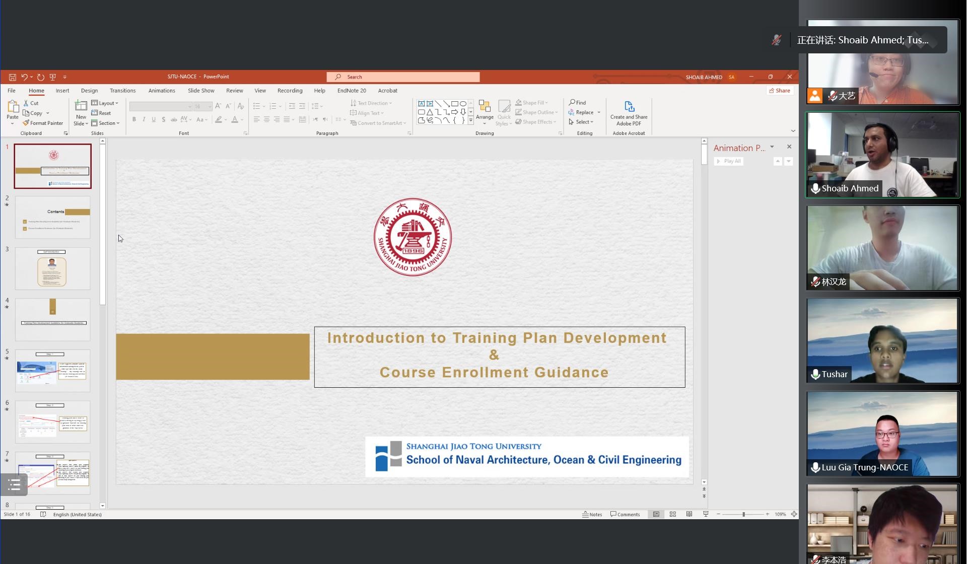 2022年9月14日,禁漫 研究生教务办高艺、学工办学生辅导员马靖云组织2022级研究生留学生新生开展线上专业教育活动。